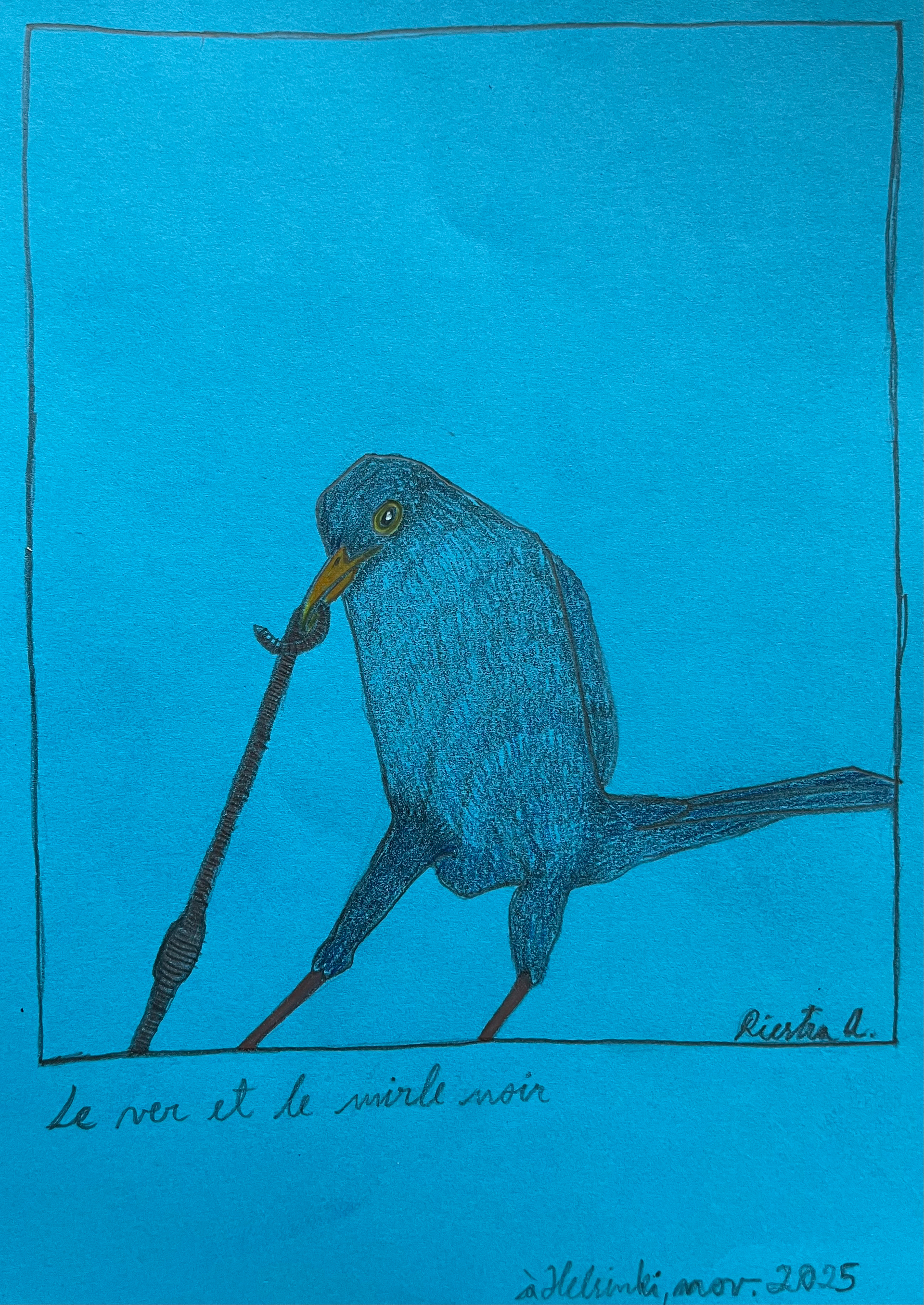 Master of the air or The crow rides the sky, Finland 2023; Felt pen, pencil and color pencil on aquarelle paper