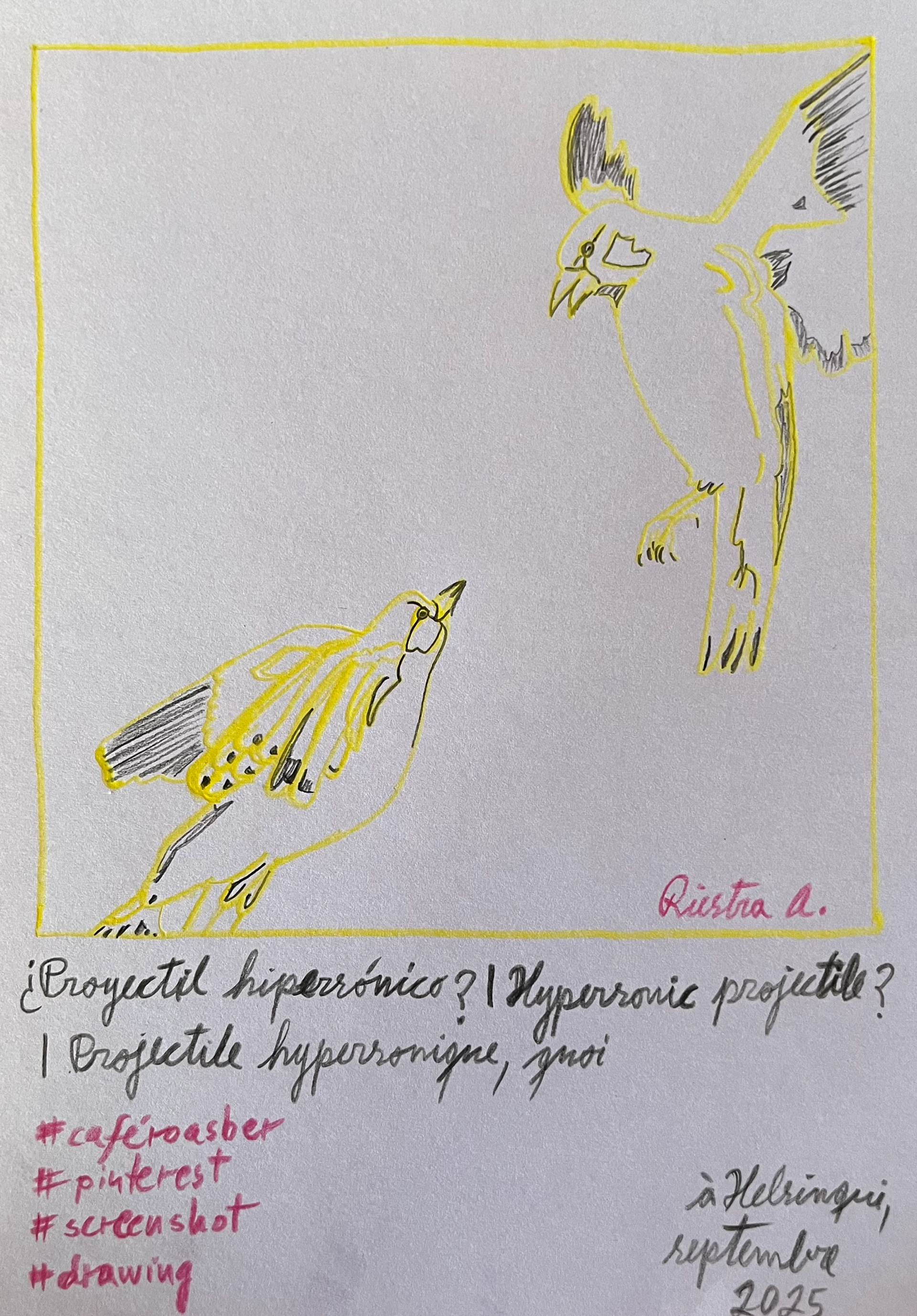 Sparrows jumping over the fence, Series, Finland 2023; Felt pen and pencil on paper