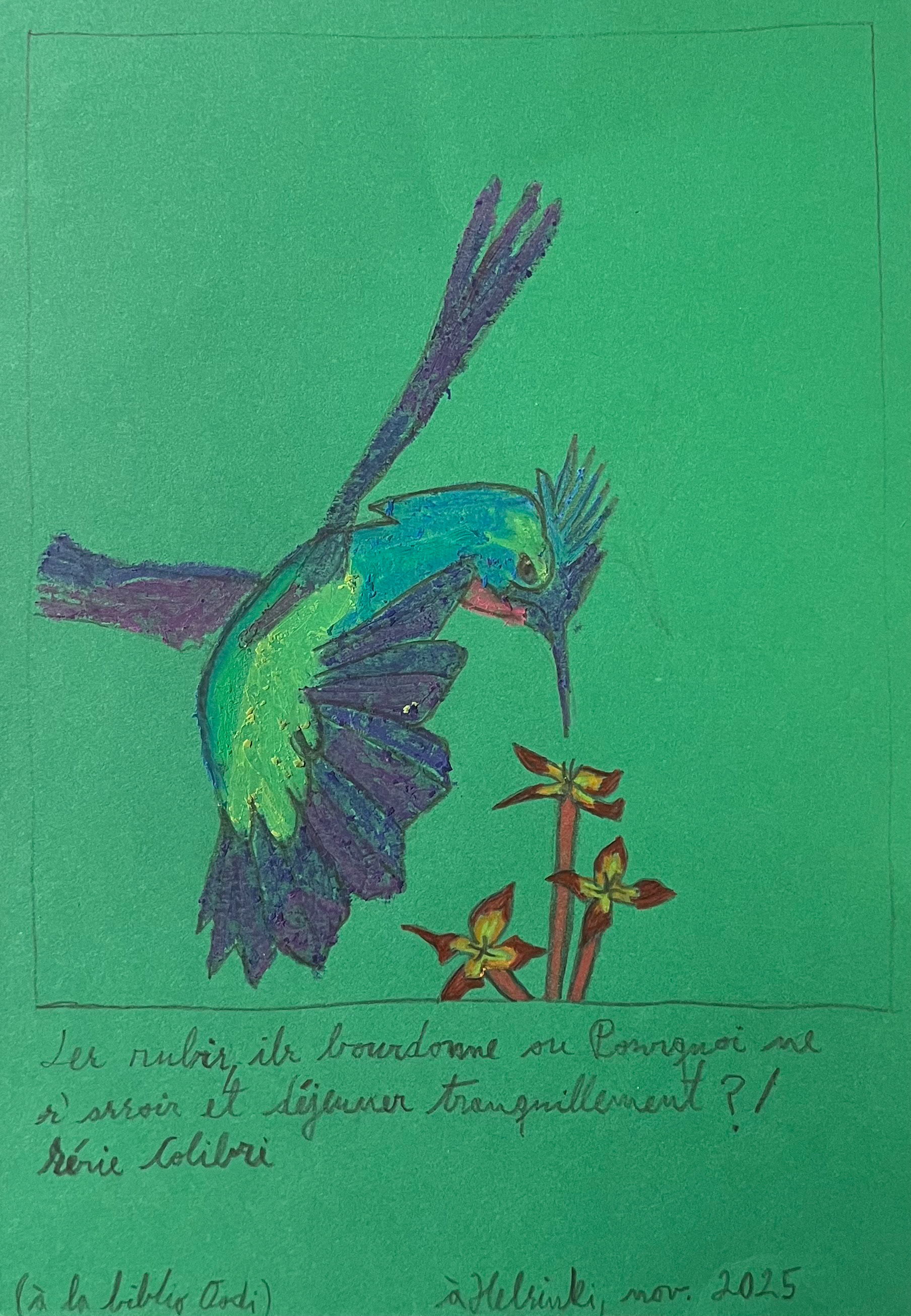 The Comet eats nectar, Finland 2023; Crayon, color pencil and pencil