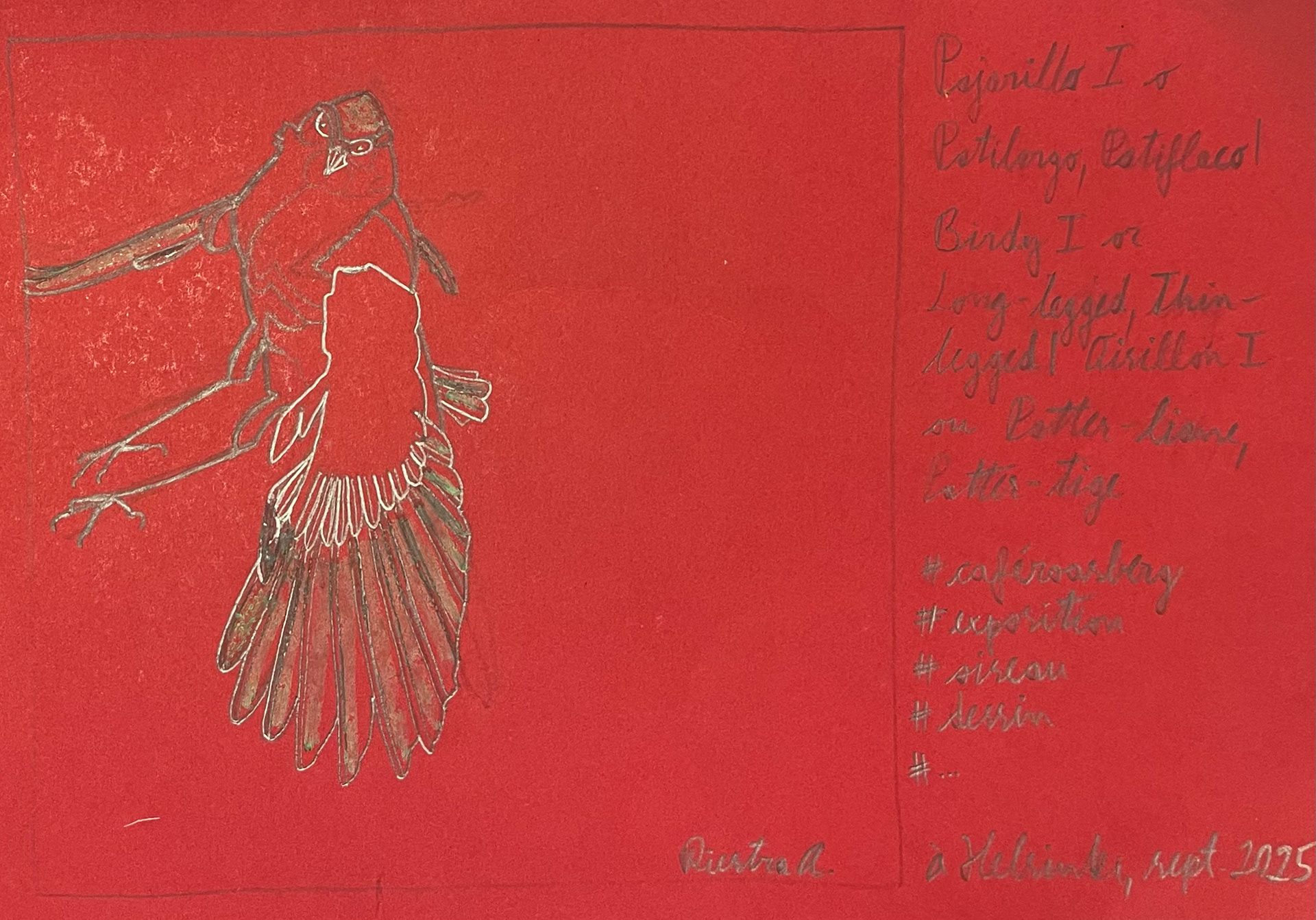 Sparrow and haiku I, Series, Finland 2023; Felt pen and pencil on paper
